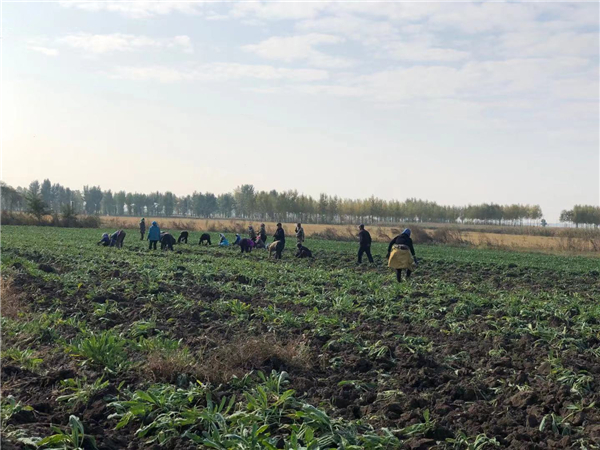 一到感冒預防季就喝的板藍根顆粒,應該是80、90後的童年回憶之一。記者小時候總以為是搓出來的顆粒,在看過多家中藥材加工廠後才逐漸了解到,板藍根也是「一種草」。在泰來縣,深秋時節記者有幸趕上了板藍根的採收季,第一次見到板藍根「廬山真面目」時,記者還以為是一望無際的胡蘿蔔。慢慢走近板藍根基地,拿起一株被種植戶採收整齊晾曬在一旁的板藍根,上半部分翠綠的葉子與下半部分20-30公分長的根就有着大功效。該板藍根基地一望無際,幾十個工人在田間作業,臉上洋溢着豐收的喜悅。