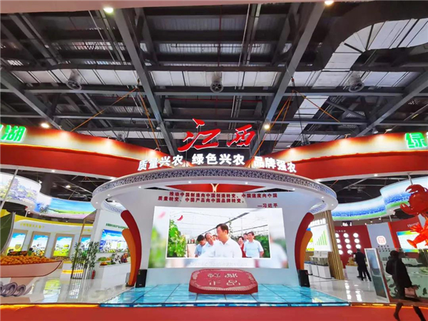 江西主題館圍繞“綠色興農、品質興農、品牌強農”,以江西農業品牌發展歷程為主線,以圖片、模型、實物等表現手段,精美呈現江西萬年稻作文化、廣昌蓮作文化、崇義客家梯田等6個重要農業文化遺產,深挖品牌底蘊,展現江西農業文化的綿亙魅力。