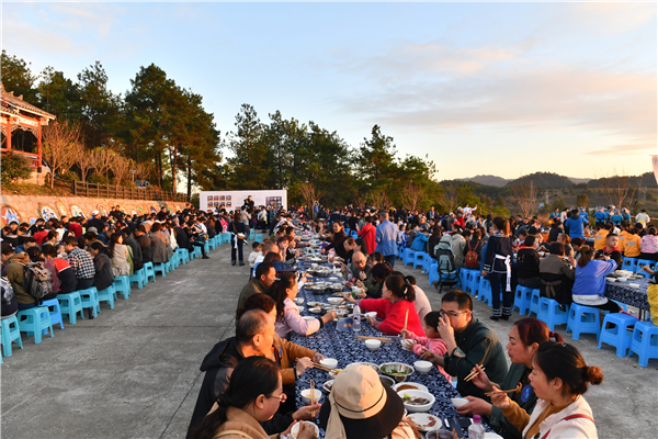 布依迎賓儀式、非遺文創互動、農特品牌市集、謝牛祭祀儀式、民俗文藝匯演、長桌宴、堂火晚會等活動,形式多樣的展示了新堡精彩的布依文化。來自八方的賓朋與當地村民一起品嘗了新堡推出全新定義的「三盤四碟八大碗」長桌宴,感受布依美食味道。