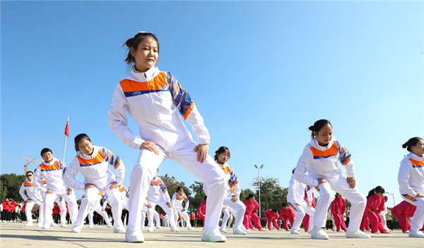 11月14日,安徽歙縣舉辦全民健身運動會暨工間操“八段錦”擂臺賽,300多人參賽展 “功力”靚風采。
