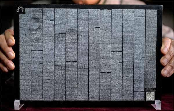 該作品長30厘米,寬20厘米,全書25萬餘字被他整整齊齊、密密麻麻刻在了峽石的正反兩面,記者只能藉助放大鏡勉強才能看清字跡,作品標題為隸書,正文為行草,字跡清晰、線條流暢、佈局均勻,「這些字最大0.5毫米左右,最小僅0.2毫米左右。」高迅波說,創作這件作品他就是想挑戰一下自己,看到底能夠刻多小的字,刻多長的作品。