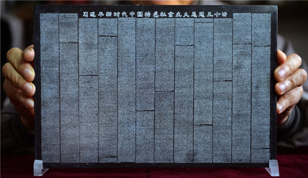 微刻作品《習近平新時代中國特色社會主義思想三十講》正面【王斌 攝】
