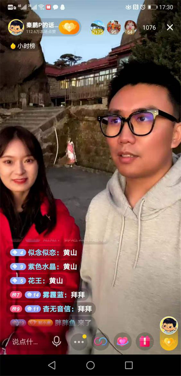 這是秦鵬第一次在黃山進行直播,抖音@花同學愛拍照 作為特殊嘉賓與秦鵬全程同行。