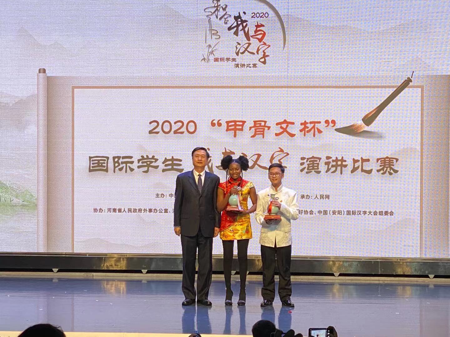 以「漢字」為媒,講好中國故事。11月17日下午,2020「甲骨文杯」國際學生「我與漢字」演講比賽在河南藝術中心舉行決賽。