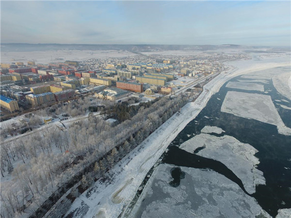 不時有居民來到江畔,用手機和相機,拍下這難得一見的美景。出門的群眾也都穿上了厚厚的冬衣,戴上帽子和口罩,全副武裝起來。邊城呼瑪銀裝素裹,宛如一個童話般的美麗世界。