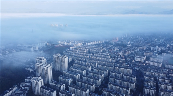 這幾天,晝夜溫差逐漸增大,在山城、水城、橋城安徽歙縣,出現了蔚為壯觀的雲海日出景觀。高空俯瞰雲霧籠罩下的城市,巍然屹立在雲端,仿佛仙境裏的“天空之城”。