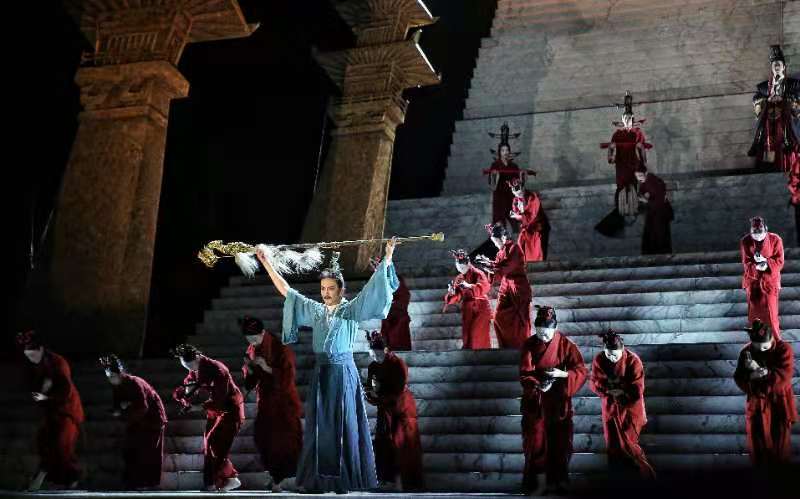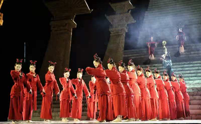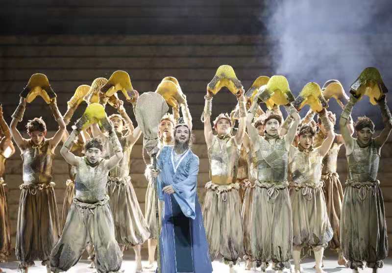 舞臺上,身著長袍、手拿漢節的使者獨自西行,遭遇匈奴圍困,在匈奴女的幫助下逃離,最終抵達西域,鑄成一條暢通的商貿、文化、和平之路,吟誦了絲綢之路上各族人民友好和睦、平等交往、互惠共榮的大美詩篇。伴隨著跌宕起伏的故事情節,張騫堅持信念、克服險阻、不忘初心、砥礪前行的堅定意志,令人現場觀眾為之動容,同時也被演員們的精湛技藝所折服,演出現場掌聲此起彼伏。