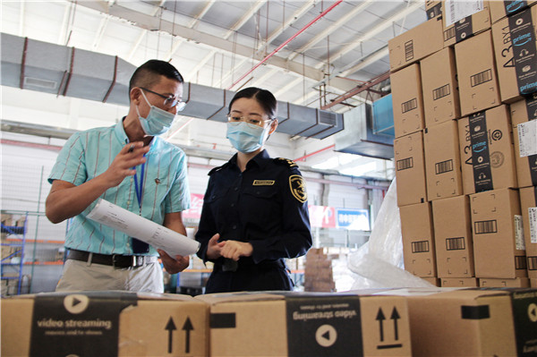 廣州海關所屬廣州白雲機場海關關員了解企業跨境電商直購進口業務開展情況——苗瑞琴攝