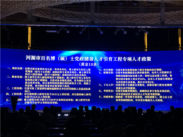 近年來,河源依託粵港澳大灣區打造國際創新科技中心的機遇,柔性引才,以現有孵化基地、產業園區、眾創空間、博士後工作站等平台為抓手,積極暢通與大灣區城市高科技人才的通道,加強與灣區城市的溝通聯繫,通過平台共建、項目合作、技術引進、聯合研發、成果轉化等方式,實現人才智力資源共享,讓河源也能享受最前沿的人才資源福利。