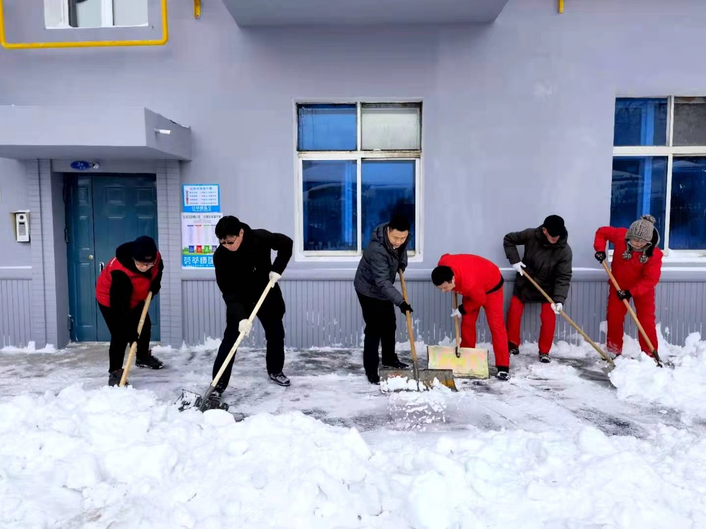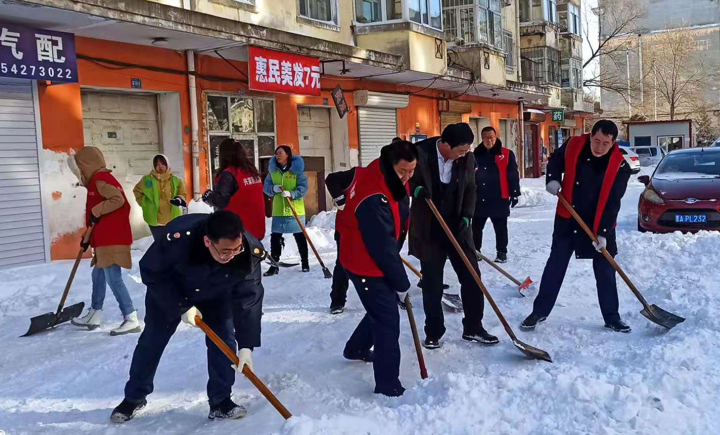 11月21日中午,平房團區委、區青聯會、區住建局、燃氣公司等單位,同哈南物業、上海新村社區黨委以及志願者們來到興建街道路隊老舊小區,採取機械除雪與人工除雪相配合的方法,共同開展清雪活動。大家冒着嚴寒清理了單元門前以及樓宇兩側出入口處的積雪,消除安全隱患,確保出入通行順暢。在寒冬中用愛心溫暖群眾,以實際行動詮釋為民宗旨,得到了居民的認可。