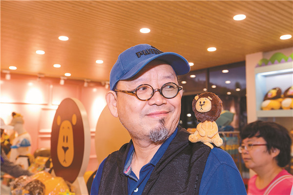 龍一與小鎮公仔阿杜合影。 陸紹龍 攝
