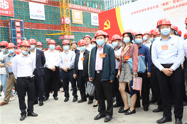 11月23日,廣東省住房城鄉建設系統共赴南山齊聚一堂,在深圳清華大學研究院新大樓建設項目現場舉行全省住房城鄉建設領域「兩新」建築工地、社區物業開展黨建試點工作現場會。廣東省住房和城鄉建設廳黨組書記趙坤,省住房和城鄉建設廳黨組成員、副廳長蔡瀛,深圳市住房和建設局黨組書記、局長張學凡,南山區政府副區長保長漢出席活動,全省各市住房和城鄉建設局、深圳市各區住房和建設局、等部門參加。