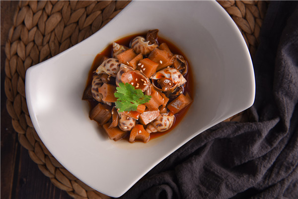 另外,食材搭配的創新是新菜單的又一亮點。「烤長茄·松露海膽汁」,將紫茄炙烤後,滋入名貴松露和海膽汁,山珍與海味在鮮香樸素的茄子中親密融合;「鵝肝涼瓜煎蛋白」,鵝肝搭配滋潤的蛋白與微苦回甘的涼瓜,口感豐富又渾然天成;「蔥香蟹粉灌湯黃花魚」,黃花魚與引味的淮揚蟹粉同時入菜,再撒入香蔥,香氣濃郁而滋補,每日限量三條。「老虎菜溫伴爽口遼參」,則將珍貴食材遼參與老虎菜、蔥、黃瓜、香菜、辣椒,共同切絲涼拌,別有創意的碰撞,口味鮮香辣,完美呈現料理的廣博豐富和別具美味。