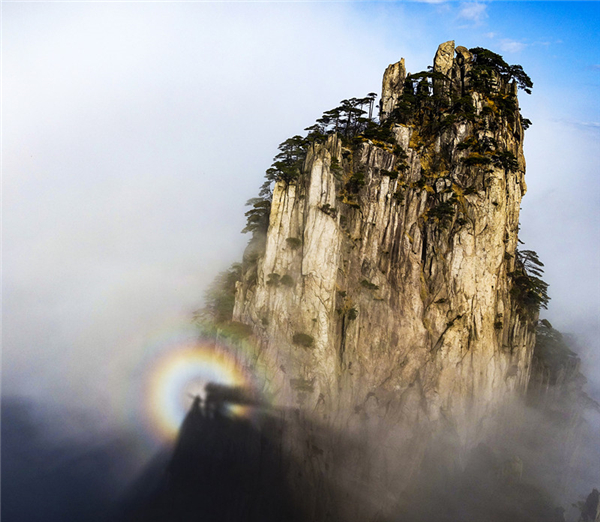 遇佛光,罕見的“佛光”奇景可遇不可求,它是山嶽型景區的一種奇特自然美景,是一種特定環境下所產生的大氣光學現象。如果這個冬天來黃山幸運的看到,請把這份好運持續一整個冬天哦。