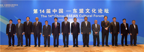 去年9月,第14屆中國-東盟文化論壇在南寧召開,圖為文化和旅遊部副部長張旭(左七)、自治區副主席李彬(右七)集體會見出席論壇的東盟各國及國際組織嘉賓。