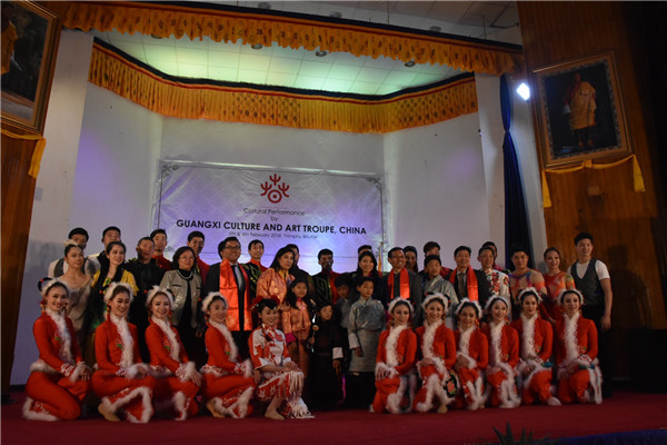 2018年 2 月廣西藝術團赴不丹舉辦歡樂春節活動,圖為2月6日藝術團在不丹演出合影。