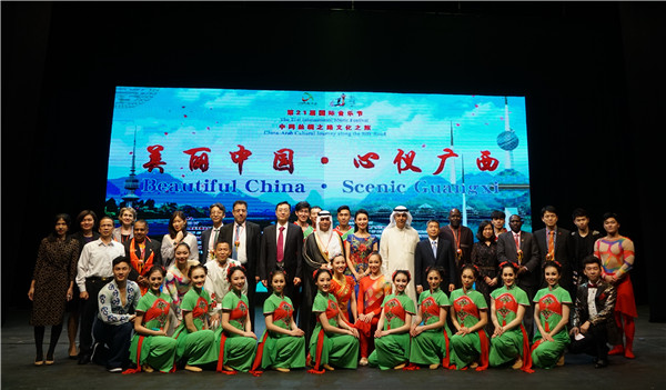 2018年 8 月 10 日至 14 日,廣西藝術團赴突尼斯參加迦太基國際藝術節,舉辦「中阿絲綢之路文化之旅——美麗中國‧心儀廣西」專場演出,圖為斯法克斯藝術節謝幕合影。