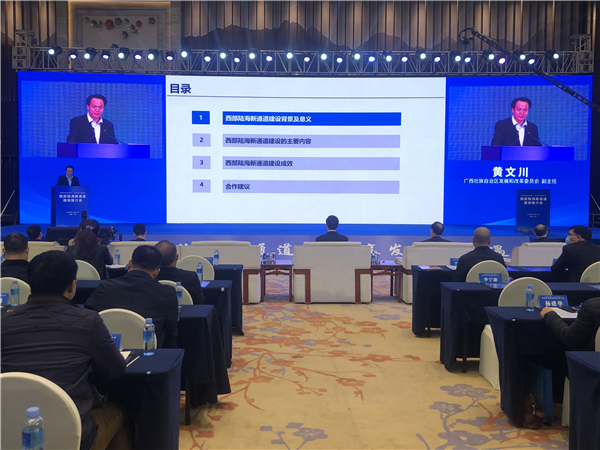 廣西壯族自治區發展改革委副主任黃文川在推介會上表示,西部陸海新通道是西部地區最便捷的出海大通道,主要建設三條主通道、四大樞紐、一個核心覆蓋區、一條輻射延展帶。目前,我們正會同通道沿線省份,共同致力於將這條通道建設成為貫通中國西部地區連接「一帶一路」時間最短、服務最好、效率最高、效益最優的國際貿易大通道。