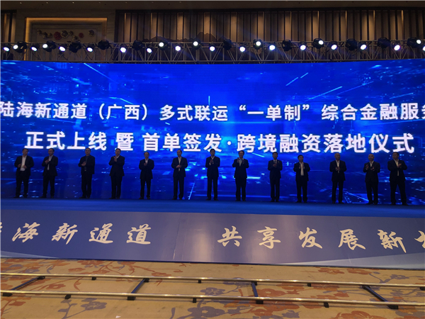 推介會上,中鐵集裝箱運輸有限公司南寧分公司與渝新歐(重慶)物流有限公司、廣西川桂國際投資發展有限公司與德陽成德物流港建設發展有限公司、廣西祥祥國際物流有限公司與盛視科技股份有限公司分別簽訂《戰略合作框架協議》。此外,還舉行了西部陸海新通道(廣西)多式聯運「一單制」綜合金融服務平台發佈儀式暨首單簽發·跨境融資落地儀式。(記者 馨瑤)