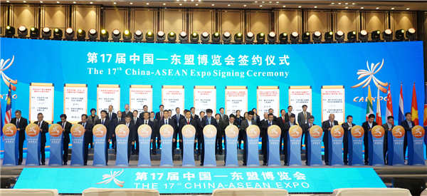2020年11月27日,第17屆中國—東盟博覽會簽約儀式在廣西南寧舉行。此次簽約儀式共組織簽訂國際、國內投資合作項目86個,總投資額2638.7億元,同比增長43.6%,是2004年首屆東博會以來簽約項目投資總額增幅最高的一屆。
