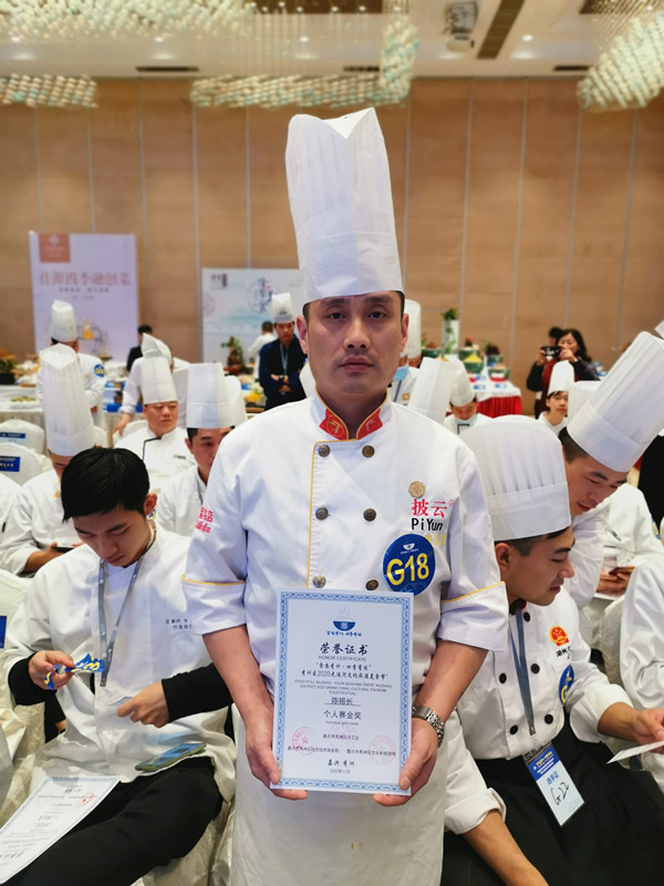 烹飪競賽環節,來自黃山市歙縣披雲山莊有限公司的參賽選手陳錫長(廚師長)、王峰(廚師長)與江浙滬皖的60餘名廚藝精英們在佳源四季酒店交流切磋,同台競技,烹製出一道道色味俱佳的運河美食。最終,陳錫長、王峰以參賽作品問政貢筍、徽州一品鍋、披雲臭鱖魚與深渡毛豆腐榮獲金獎。