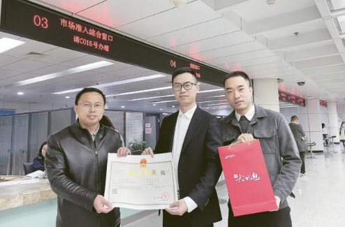 近日,長沙高新區市場監管局副局長范龍為長沙古早食品貿易有限公司的負責人魯先生頒發首張「一業一照」營業執照這是自長沙高新區「一業一照、一業一證」改革以來頒發的首張行業綜合許可證當天稅務發票、一套新的企業公章也送到了魯先生的手中。