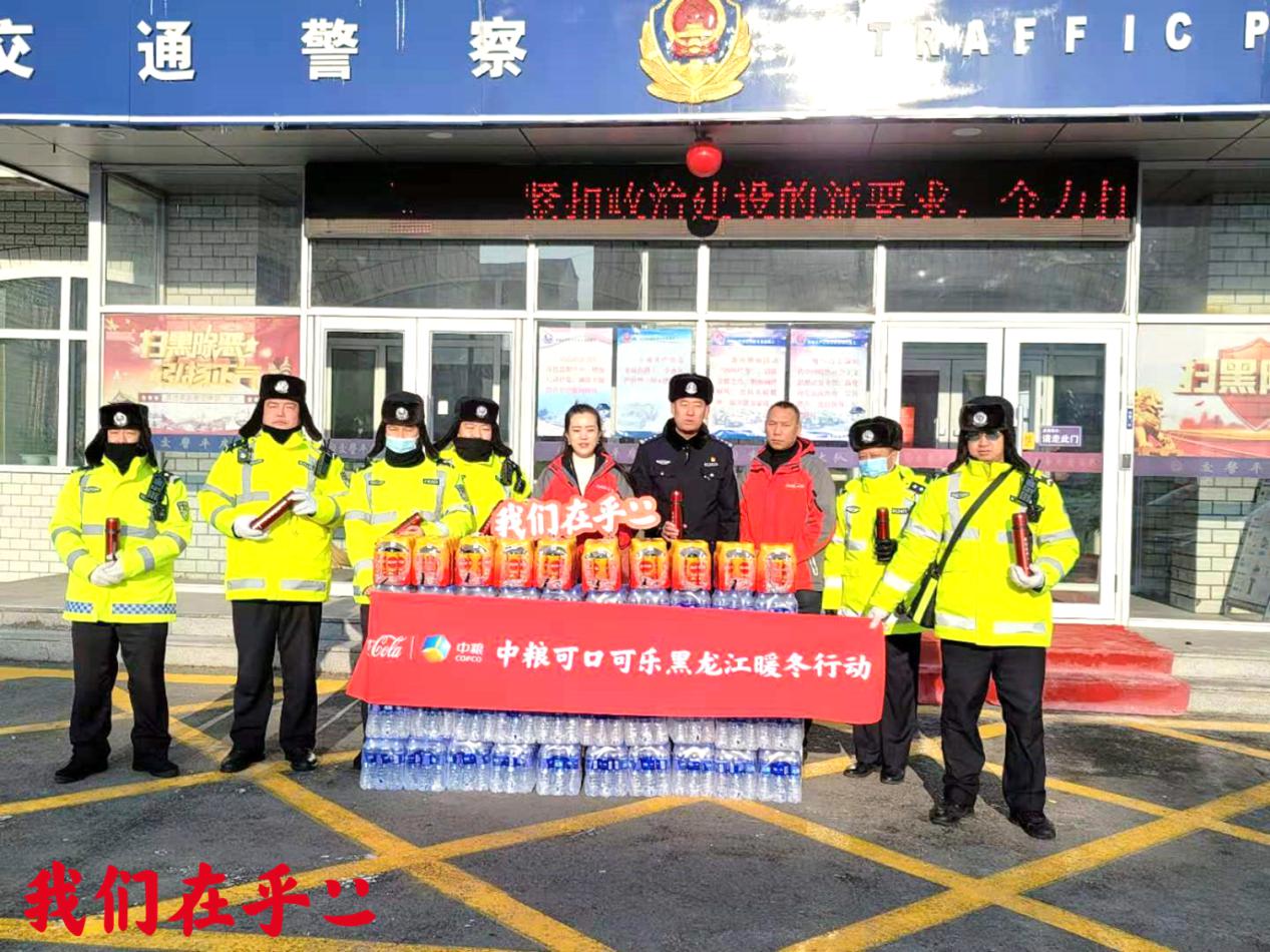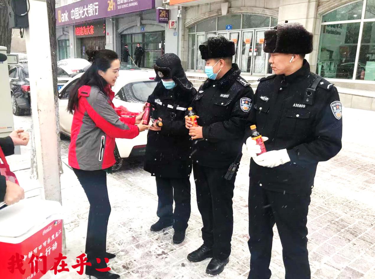 伴隨着又一波冷空氣的來臨,哈爾濱室外天氣驟降。中糧可口可樂飲料(黑龍江)有限公司的志願者們給在凜冽的寒風中堅守路面執勤的交通警察們,送去保溫杯和熱乎乎的生薑可樂。向交警們始終兢兢業業、恪盡職守堅持在一線,為廣大市民的出行創造安全、和諧的道路交通環境致敬。