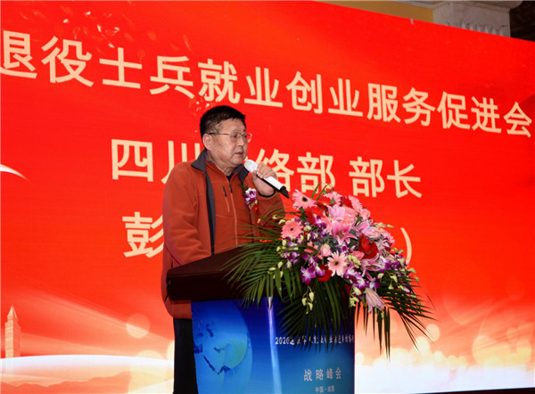 中國退役士兵就業創業服務促進會四川聯絡部部長彭滿山(少將)在峰會上致辭
