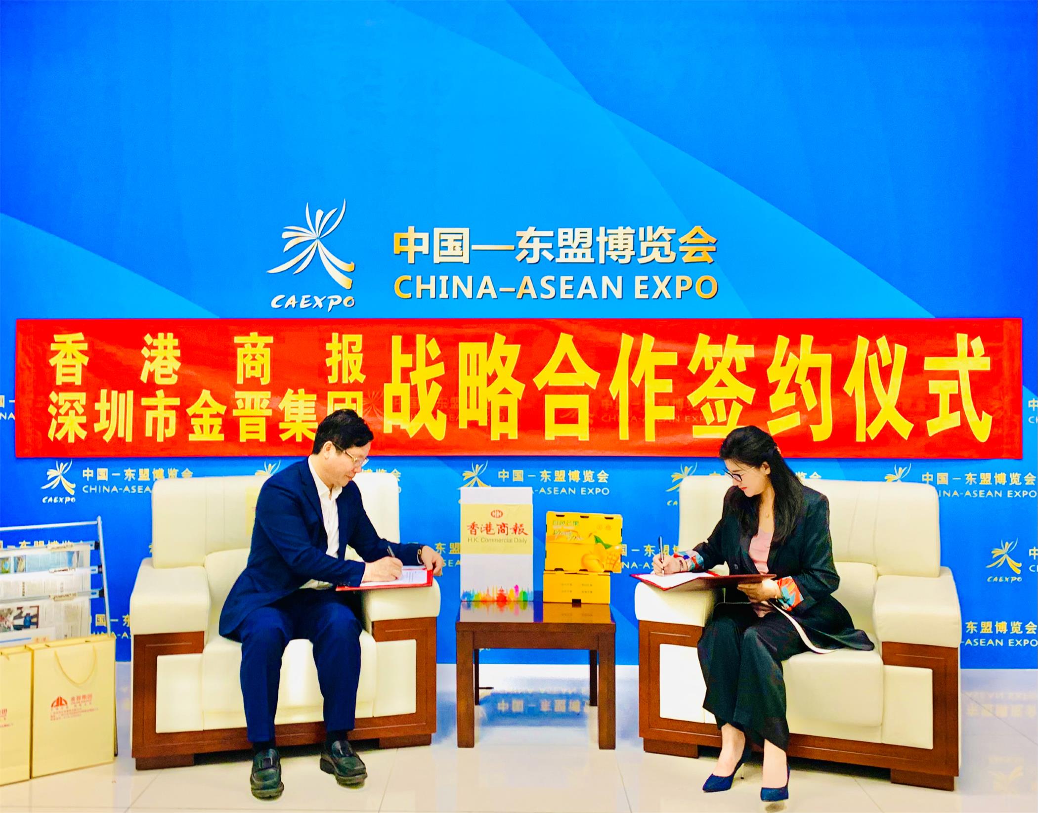 在第17屆中國—東盟博覽會舉辦期間,深圳金晉集團與《香港商報》廣西辦事處簽署戰略合作框架協議,雙方將推動金晉集團在廣西及粵港澳大灣區尤其是香港的品牌落地與輸出,搭建廣西—深圳—香港優質農產品供應鏈一體化渠道,推動金晉集團在廣西的戰略佈局與落地,並搭建與東盟國家合作渠道。