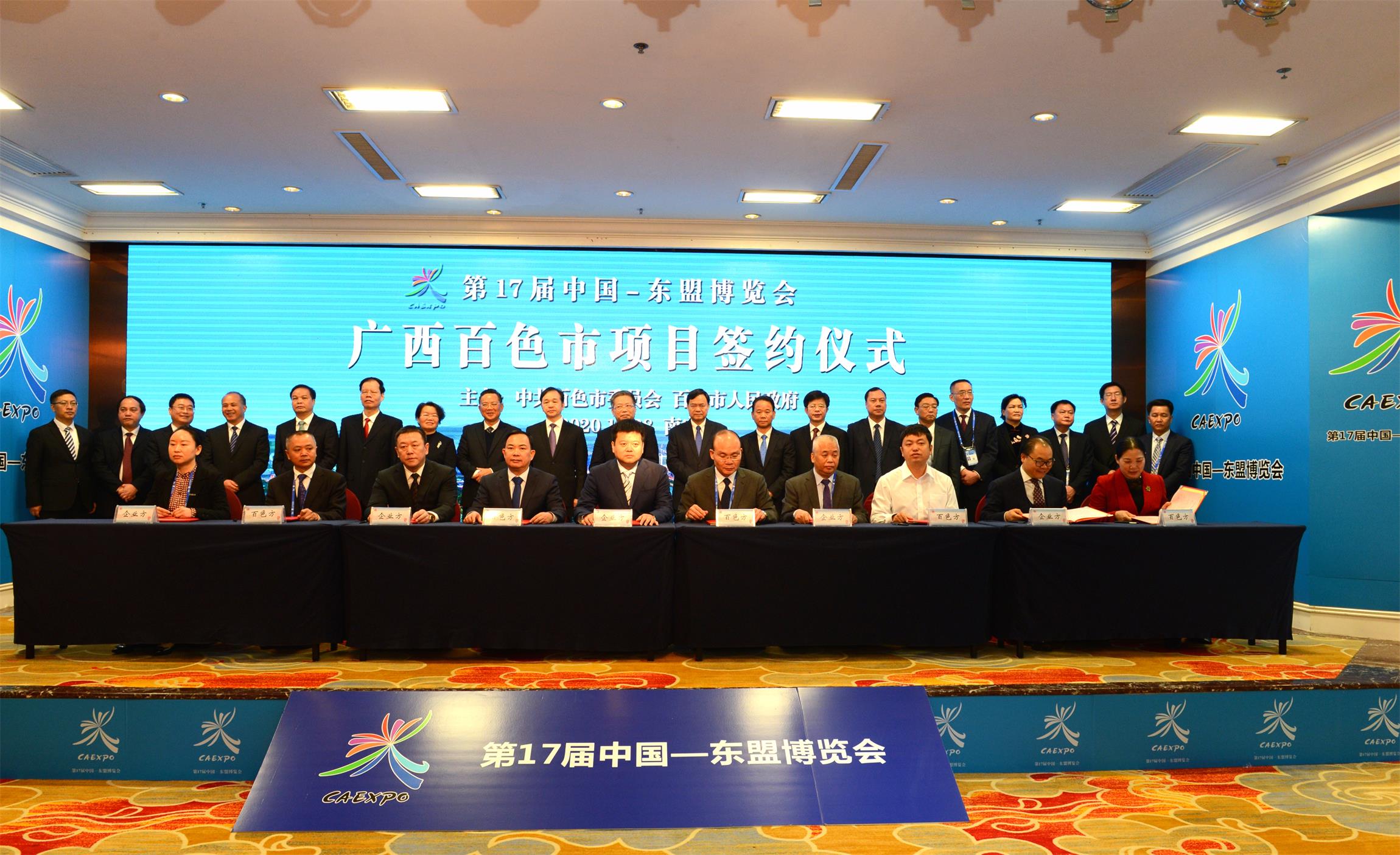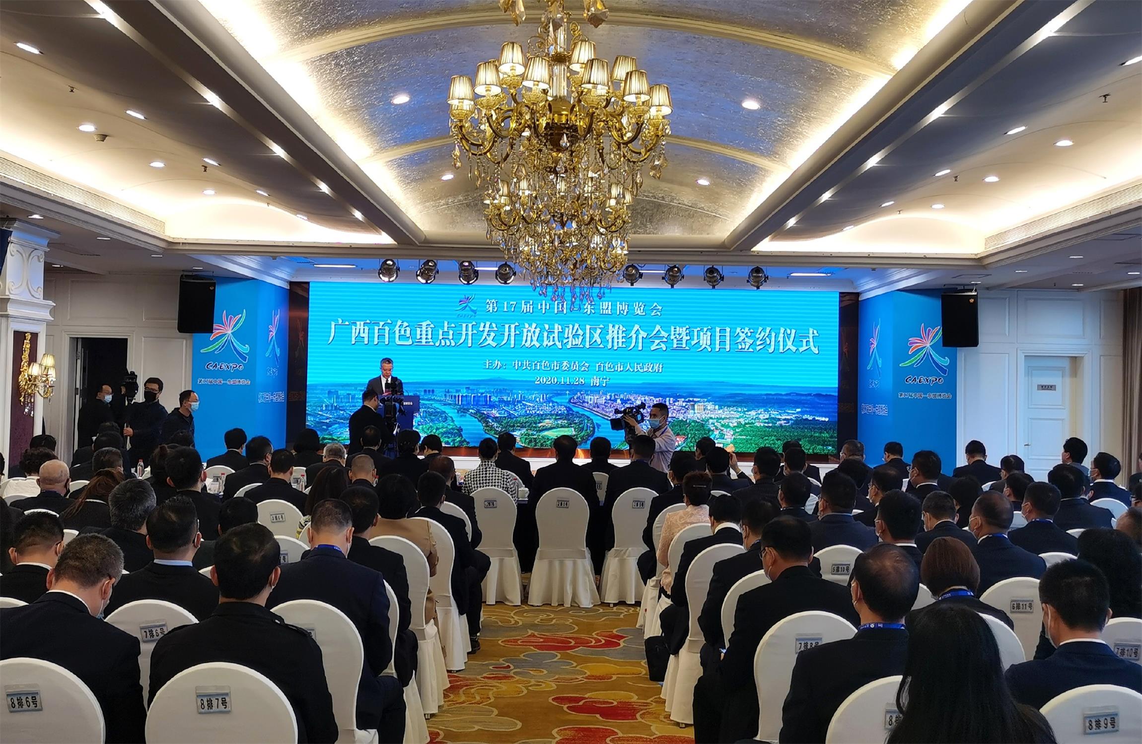 11月28日,廣西百色重點開發開放試驗區推介會及項目簽約儀式在南寧舉行。乘着第十七屆中國—東盟博覽會東風,百色市共簽約49個項目,總投資達496億元。