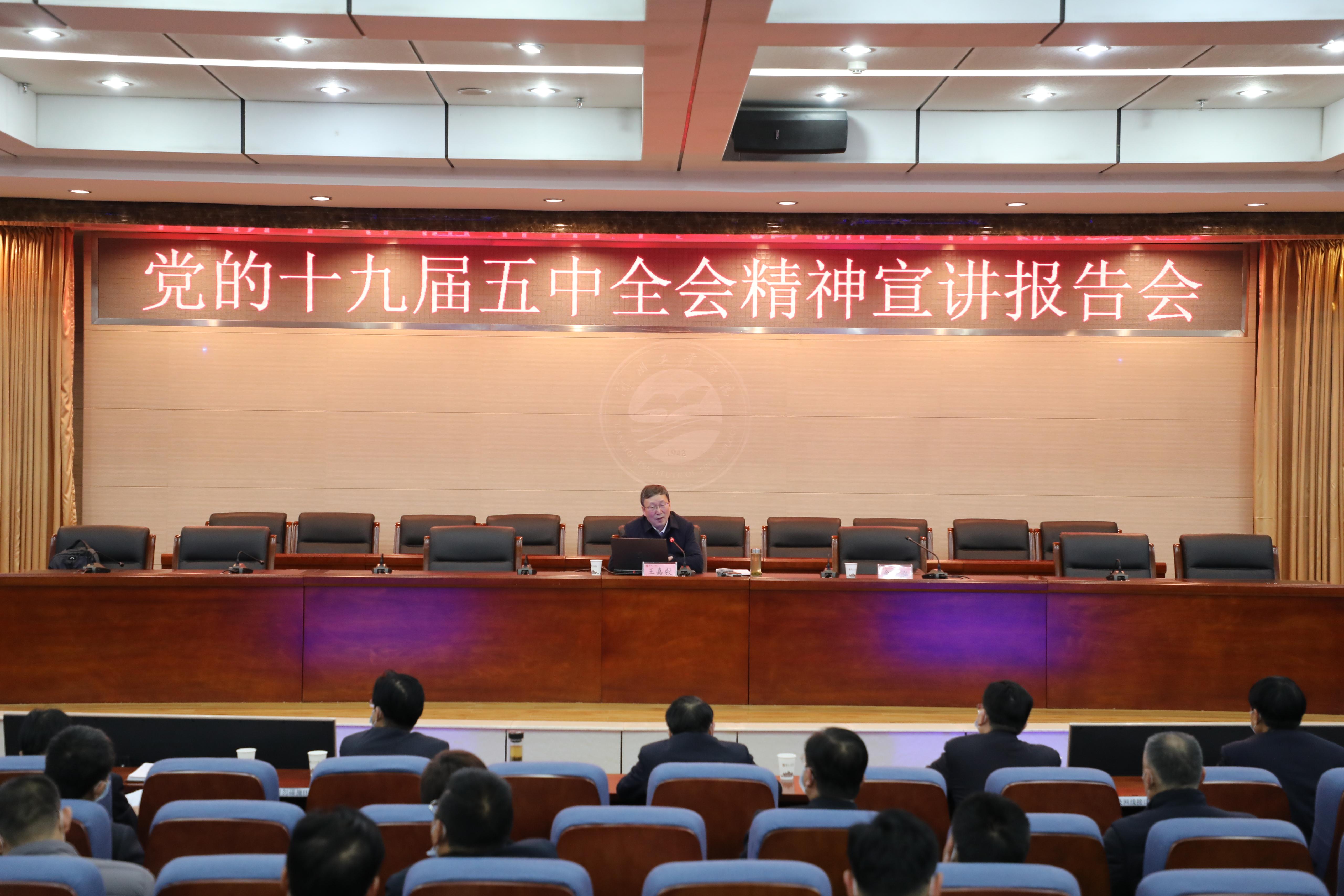 王嘉毅分「黨的十九屆五中全會主要精神」「十九屆五中全會的重大意義和重大戰略部署的取向特點」「『十三五』時期甘肅省經濟社會發展情況」「『十四五』發展目標和2035年遠景目標突出特點」等方面,對黨的十九屆五中全會精神進行全面宣講和深入解讀。