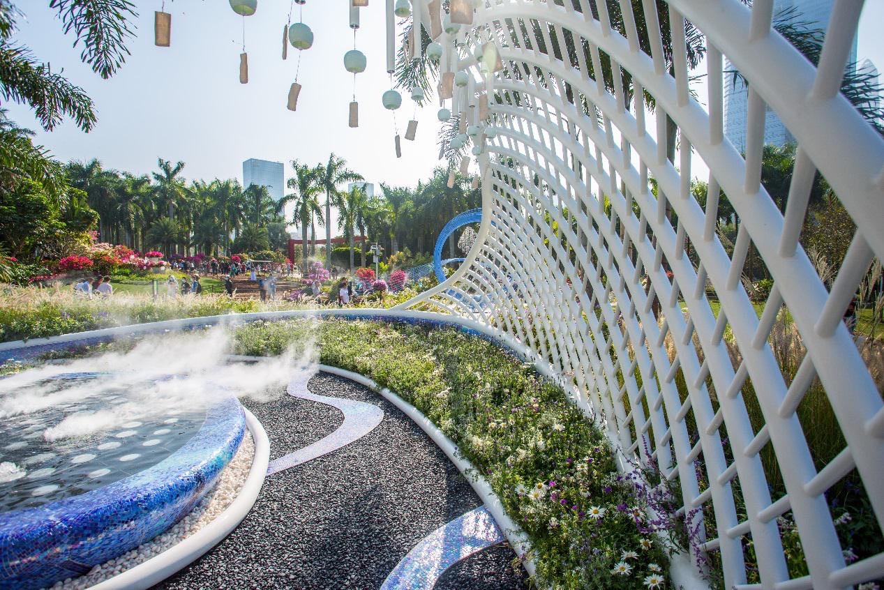 值得一提的是,鹽田展園還巧妙地結合場地條件,將花卉元素與藝術手法融入其中,分啟航、乘風、夢海三段,借各色花語抒發情感,將海浪,沙灘等鹽田元素融入休閒區座椅設計和噴霧等細節表達,借精巧花境打造兼具藝術審美與人文傳遞的互動空間,擴大時空概念,描繪宜居宜業宜游現代化國際化創新型濱海城區實現之時的幸福美好生活,突出鹽田人民對幸福美好生活的嚮往與期待。(記者 羅國淮)