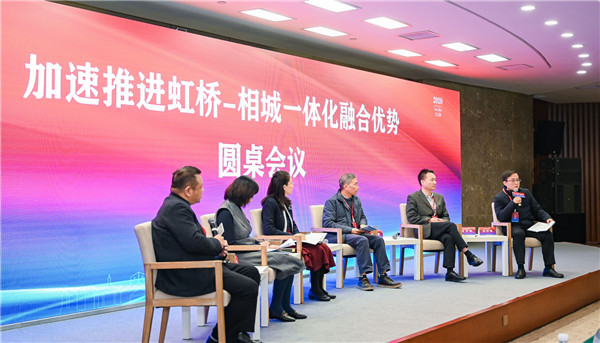 在圓桌討論環節,蘇州科技大學教授、商學院副院長楊傳明,蘇州大學商學院副教授孫俊芳,上海交通大學黨委宣傳部副部長、 教授陳華棟,西交利物浦大學博士、教授陳陽,上海交通大學原黨委常委、教授、博導李建強等嘉賓分別就《做好兩地合作平台建設更好發揮平台服務功能》、《加強產業合作推進兩地深度融合發展》、《推進創新文化建設,夯實虹橋-相城融合支撐》、《相城-虹橋的交通模式看經濟發展的合作潛力》、《切實發揮高校人才和科技優勢,推動虹橋一相城融合發展》等主題展開討論。