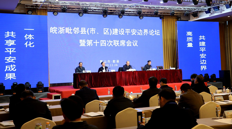 11月26日,皖浙毗鄰縣市區建設平安邊界論壇暨第14次聯席會議在安徽歙縣召開,黃山、宣城、杭州、湖州、衢州五個城市成立市域社會治理現代化聯盟。