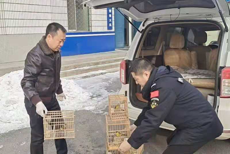 11月21日10時許,森林警察大隊民警在阿城區河畔麗景小區旁的二手物品交易市場內巡控檢查時,發現有人正在售賣野生鳥類,現場查獲野生活體鳥類 5 只,獵捕工具拍籠 10 套,隨即民警將販賣鳥類的人員馬某帶回大隊進行調查。