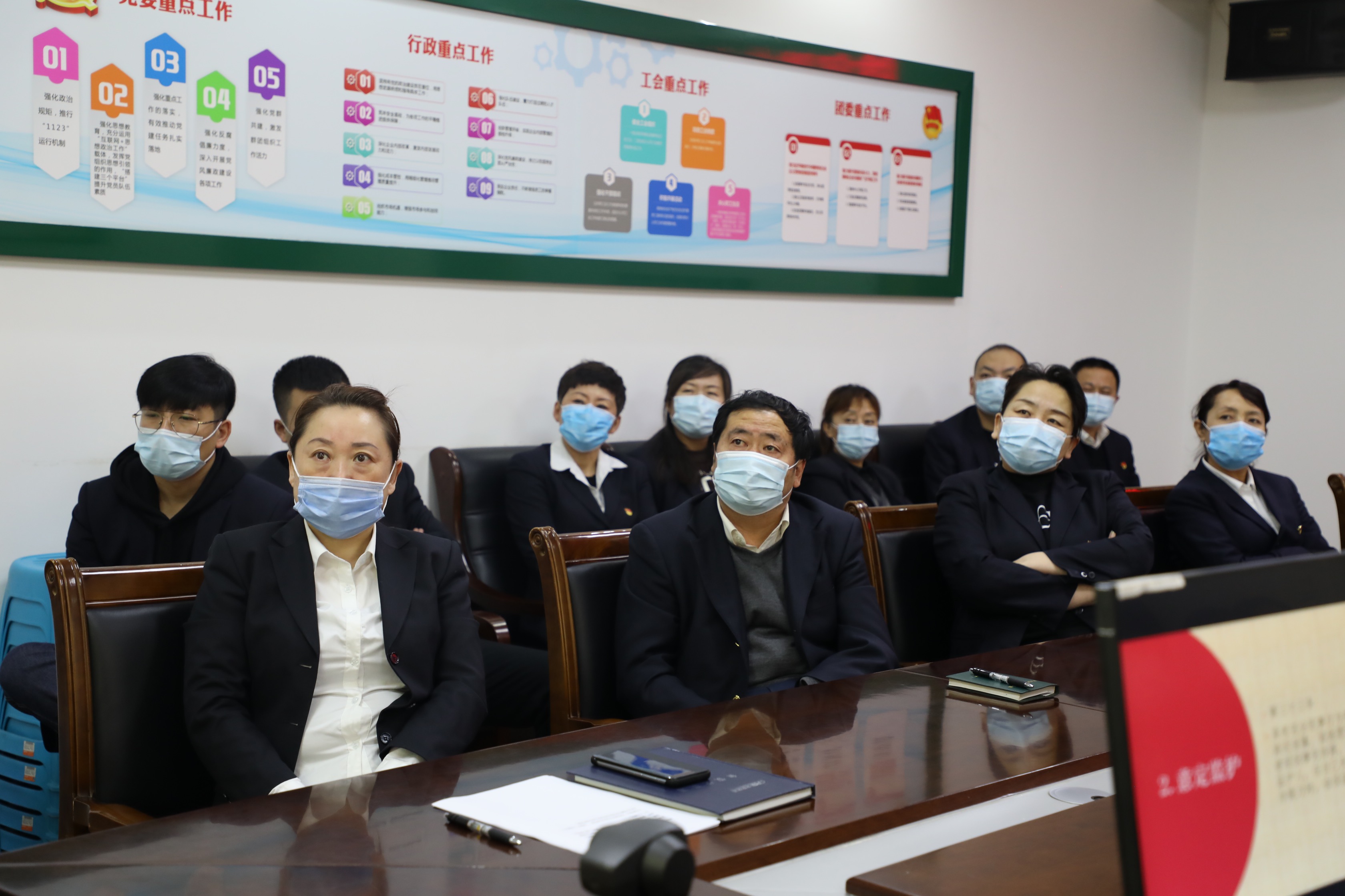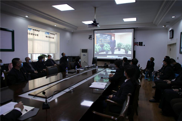 宣講前,香坊區法院與企業視頻連線,通過大屏幕上講解員的引導及介紹,員工們遠程「參觀」了香坊區法院標準化審判法庭、法警大隊文化長廊等場所,了解了法院近年來在審執工作、信息化建設、隊伍建設等方面取得的成果。