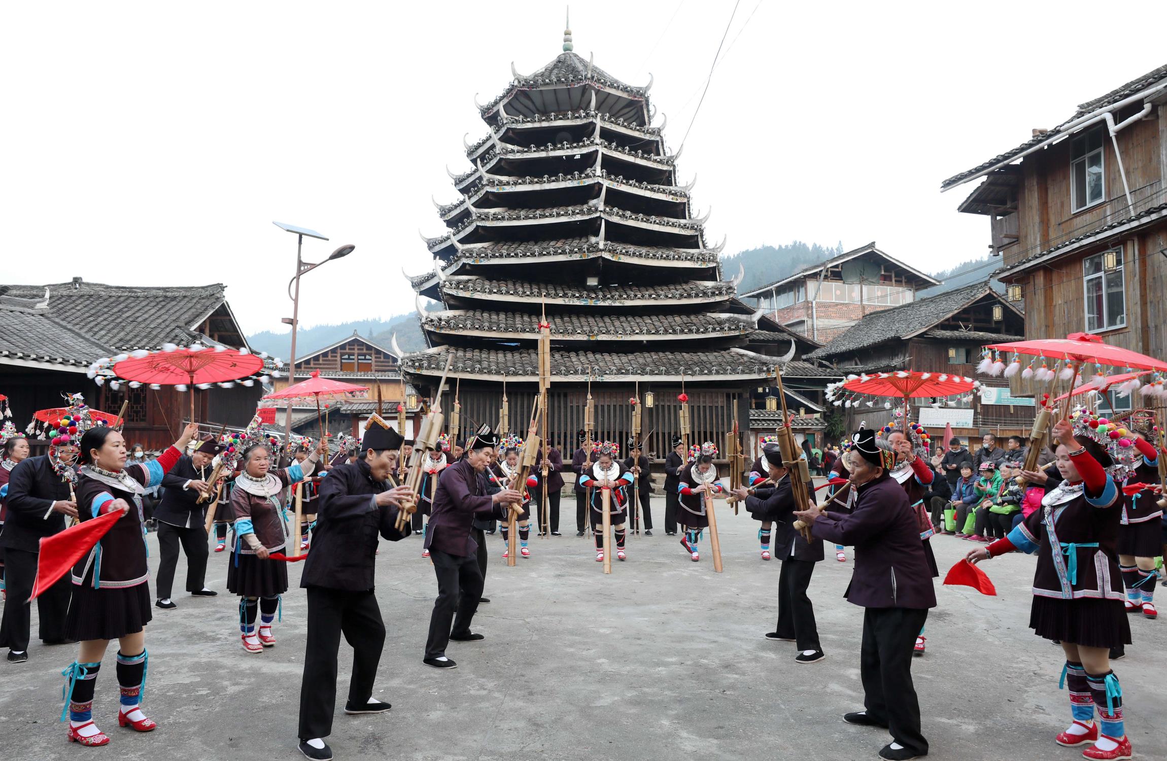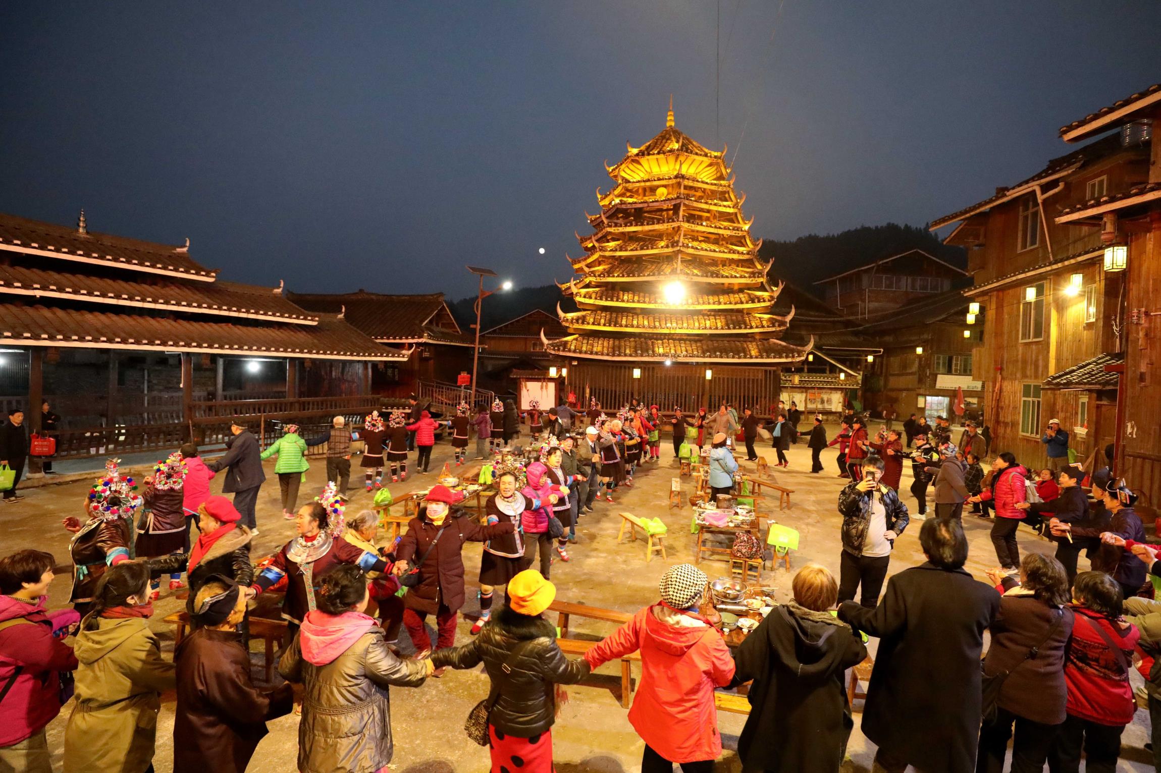 11月29日,廣西三江侗族自治縣林溪鎮冠洞村冠大屯迎來一批「冬遊廣西」遊客,當地侗族群眾以蘆笙踩堂、侗族大歌、侗族琵琶歌、百家宴、多耶等豐富節目,與遊客激情互動,讓遊客們盡享侗鄉獨特文化魅力。