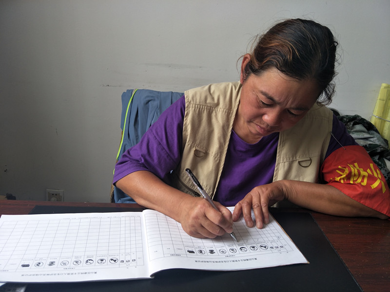 肖衛星非常珍惜這一份工作,走上生態護林員崗位後,以飽滿的熱情全身心地投入到工作中,穿梭在自己巡護區,時刻繃緊護林防火這根弦,晴天多巡山,發現有野外用火及時制止,發現有亂砍濫伐、獵捕野生動物、毀壞林地的立即上報有部門處理。晚上回到家,第一件事就是認真如實填寫巡護記錄。近三年來,她跑遍了1645畝巡護區的每一道山梁、每一片林地,從不叫苦叫累。