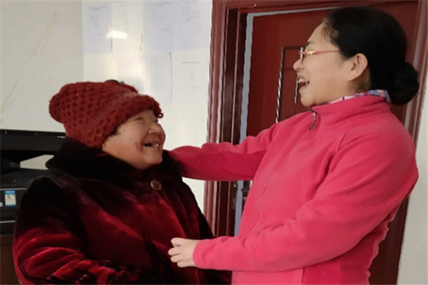 第二戶,張全福,70歲,幫扶時也是兩口人,老伴患腦梗留下了後遺症常年臥床,於2018年春離他而去。張全福老伴在時,谷英姿像對待自己的親人一樣,從家裏給拿來了毛巾被,從商店稍來了尿不濕,買來了水果,辦理了低保,並找到殘聯的同學劉爽辦理殘疾證。但殘疾證還沒辦完,人匆匆走了,給谷英姿留下了遺憾。張全福是個勤勞的老人,不但要經常出去打工,有時還要照料已經上初中的孫子和外孫。谷英姿發揮自己是教育工作者的特長,一有時間就幫助兩個孩子補課,兩個孩子也很爭氣,都以優異的成績考入了高中。