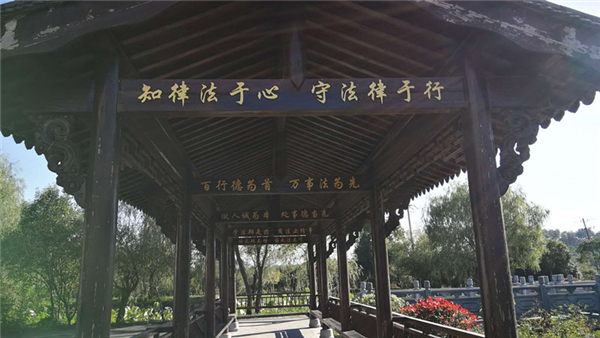 普法宣傳全覆蓋,農村是關鍵。走進黎陽鎮鳳霞村法治文化廣場,廣場正中巨型鵝卵石,雕有“民主法治文化廣場”字樣,廣場四周佈滿印有法治宣傳標語的宣傳展牌,這裏是村民的學法集散地。村內還建有一條長達30米的法治文化長廊,長廊兩側的木柱上懸掛著各種法治宣傳標語,讓村民在輕鬆的氛圍中接受法治文化薰陶。在村委會服務大廳還建立普法“e”站,向村民推出最新的法治資訊和法律知識,滿足村民的法治學習需求。