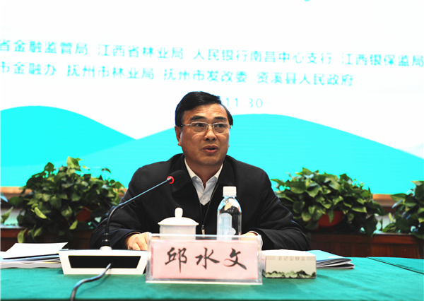 會議由江西省金融監管局、省林業局、人民銀行南昌中心支行、江西銀保監局和撫州市人民政府主辦,撫州市金融辦、市林業局、市發改委、資溪縣人民政府承辦,旨在總結交流全省「綠水青山」向「金山銀山」轉化金融服務工作的成效與經驗。國家林草局改革發展司一級巡視員杜紀山,省林業局黨組書記、局長邱水文,省金融監管局黨組書記、局長韋秀長,人民銀行南昌中心支行黨委委員、副行長杜正琦,江西銀保監局黨委委員、二級巡視員李青川出席會議並講話。