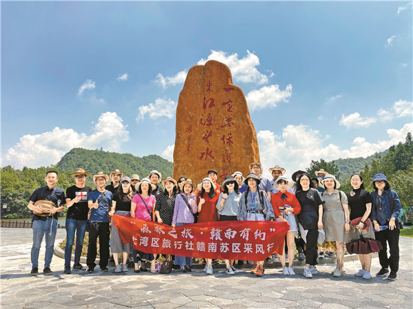 粵港澳大灣區旅行社採風團在安遠三百山合 影留念