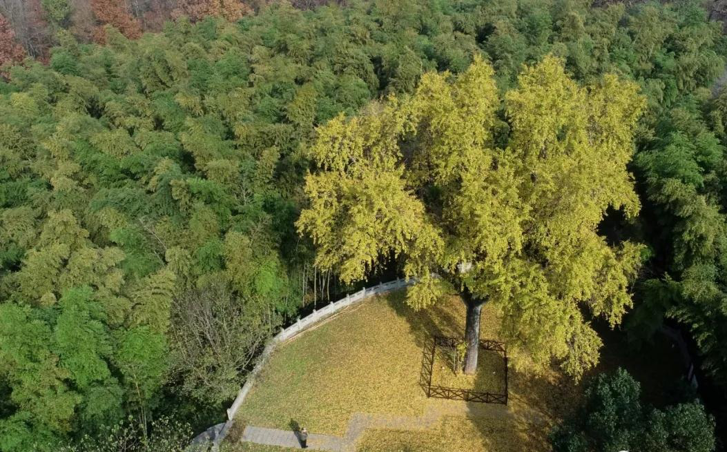 提起離安徽省巢湖城區最近的銀杏樹,就不得不提東庵森林公園內那株已挺立600餘年的銀杏樹。這幾天,這株古銀杏已是滿樹金黃,隨風飄落的樹葉,鋪滿大地似黃金地毯,成為冬日裏一道亮麗的風景。