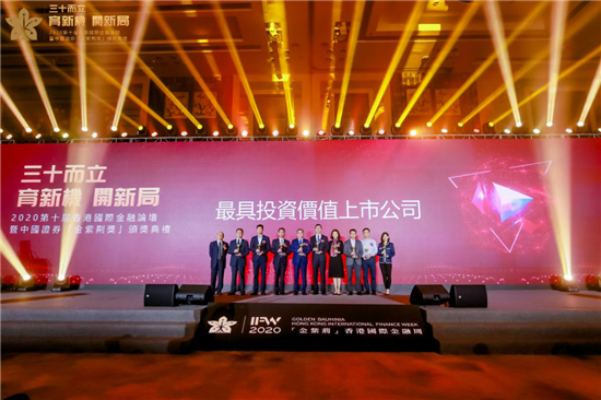 12月3日,「2020第十屆香港國際金融論壇暨中國證券金紫荊獎頒獎典禮」在深圳舉行,港華燃氣有限公司(香港股份代號:1083,簡稱「港華燃氣」)憑藉出色的財年表現,榮獲「最具投資價值上市公司」大獎。
