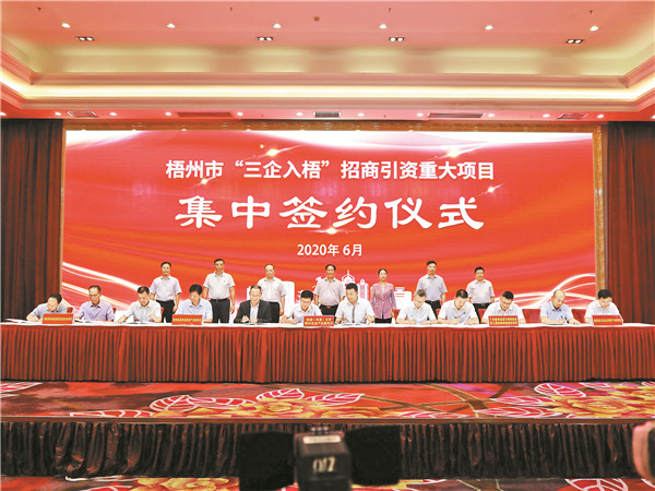 梧州市舉行 「三企入梧」 招商引資重大項目集 中簽約儀式。