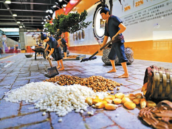 為增進與客商互動,展廳內還設有別具一格的互動區。在這裏,通過電子觸摸屏等交互形式,參展觀眾積極參與「五糧液酒非遺釀藝相關知識問答」「五糧液七大核心釀造步驟拼圖」等互動遊戲,深度了解和體驗五糧液非遺釀藝。