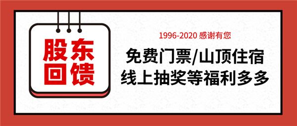 “1996-2020 承蒙厚愛 感謝有您。”記者日前從黃山旅遊發展股份有限公司獲悉:為答謝各位股東,黃山旅遊將倾情開展股東回饋活動。時間定於2020年12月19日(週六)至27日(周日),為期9天。