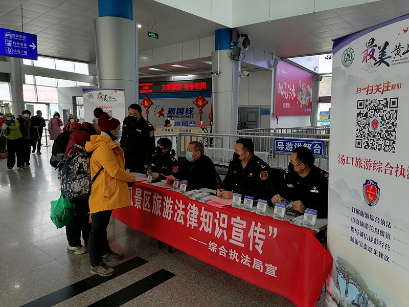 2020年12月4日是第7個“國家憲法日”,黃山風景區旅遊管理綜合執法部門在景區南大門新國線集散中心設立諮詢臺,以黃山風景區相關旅遊法律知識為主線,積極開展法制宣傳活動。本次宣傳,執法人員現場發放《黃山風景區旅遊知識“十問”》、《消費者參團旅遊請選擇正規旅行社》、《黃山風景區旅遊管理綜合執法》等宣傳手冊100餘份,並現場接受旅遊諮詢60餘人次,受到了廣大進山遊客的一致好評。