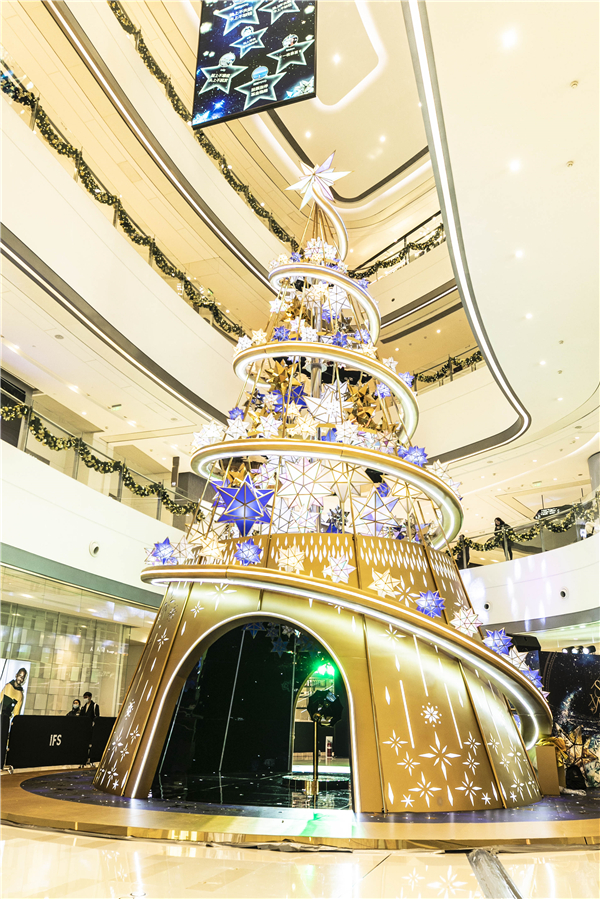 12月4日,成都IFS「STAR WINK星耀許願季」暖冬主題活動閃耀啟幕。場內中庭星耀許願樹,雕塑庭院的星光花園及周圍街區身着節日盛裝的銀杏樹群被同時點亮,為城市中心帶來一份冬日驚喜。