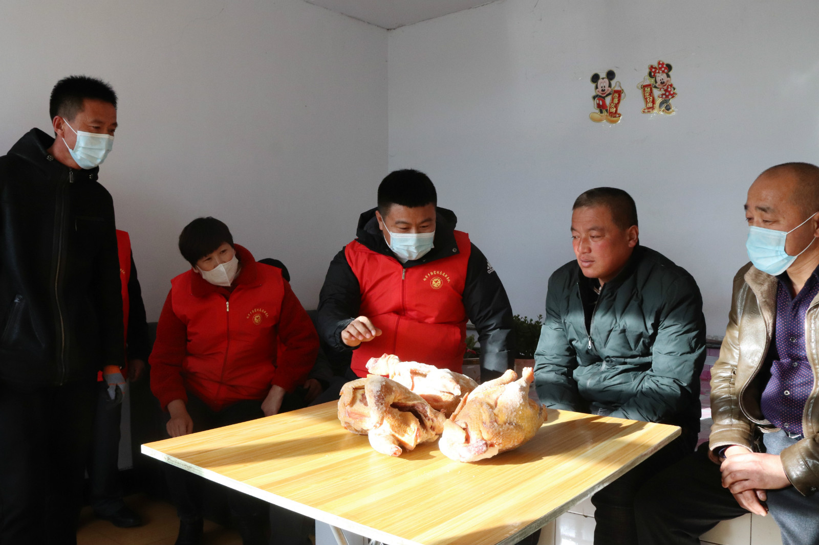 一大早,向華鄉勤富村新時代文明實踐站站長劉奎武帶着民營飯店老闆來到建檔立卡戶張大波的家裏,驗收已經屠宰好的「溜達雞」,民營飯店老闆當場決定全部收購,讓張大波的「溜達雞」變了現。隨後志願者們幫助他清理了積雪,打掃了庭院衛生。